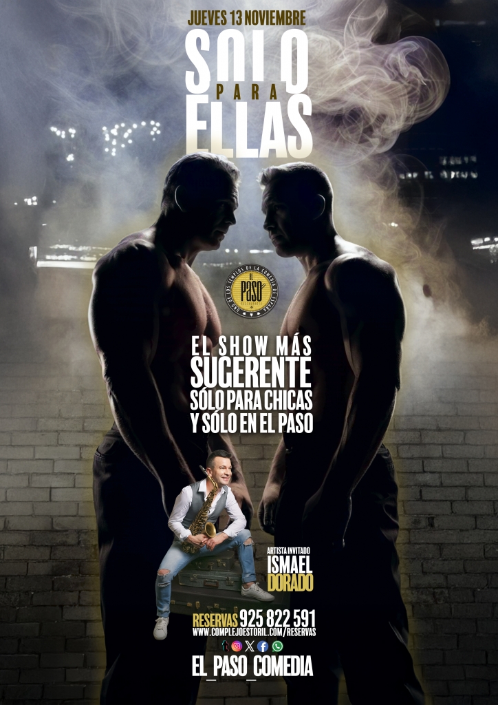 El espectáculo más sensual de Restaurante El Paso, solo para chicas, con la presencia de dos chicos guapísimos y la actuación de Ismael Dorado con su show frenético y super divertido.