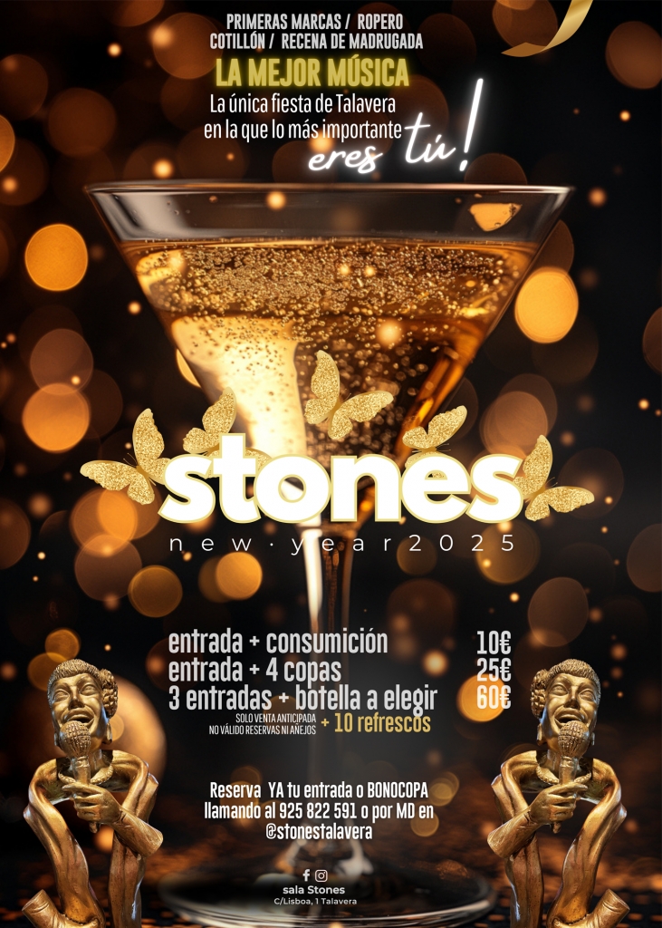 Ya está aqui la legendaria Fiesta de Nochevieja de Stones. Reserva ya tu entrada, bonocopa o botella.